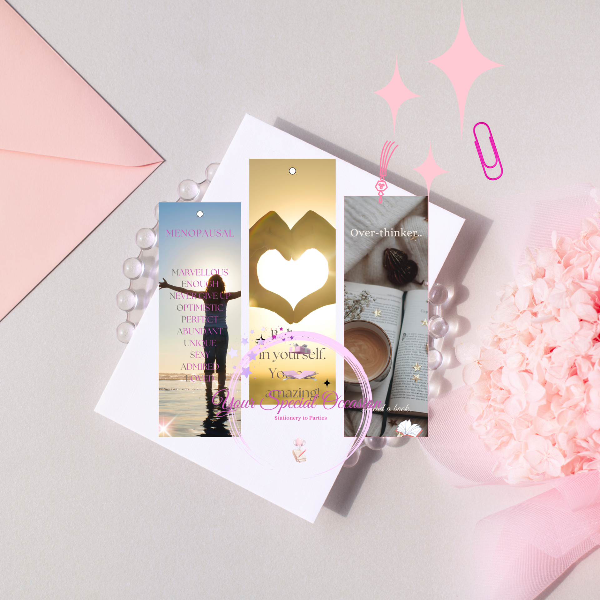 Bookmarks are packaged in a glassine paper bag and sent in an A5 hardbacked envelope for protection.