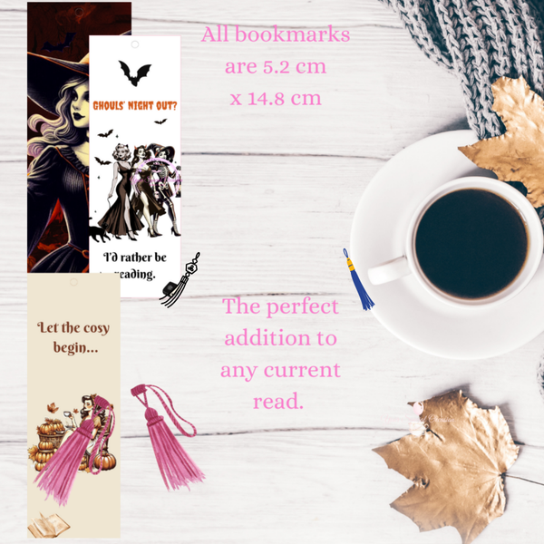 All bookmarks are 5.2 x 14.8 cm in size. They are printed on smooth card, and come with a coordinating tassel.