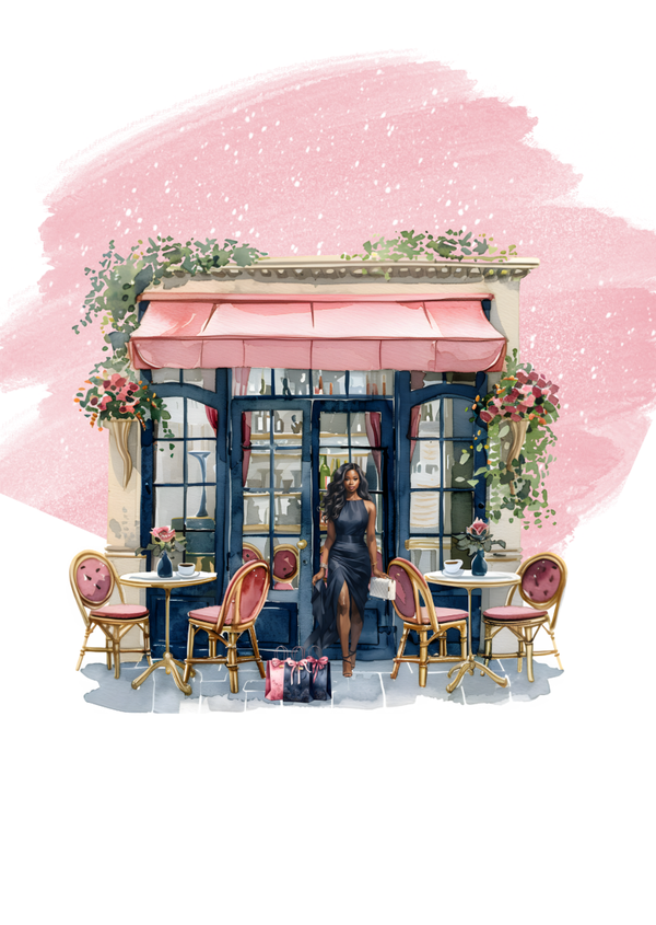 Bring some 'joie de vivre,' to any space with this pretty print of a beautiful woman as she leaves a gorgeous Parisienne-style coffee shop.